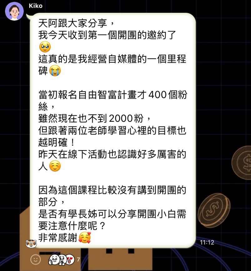 除了正式課程,我們還會不定期邀請變現高手、創業前輩,開講真實經驗與實戰心法。